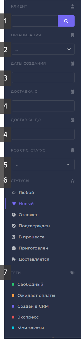 5) POS сис. статус - статус выгрузки заказа;
